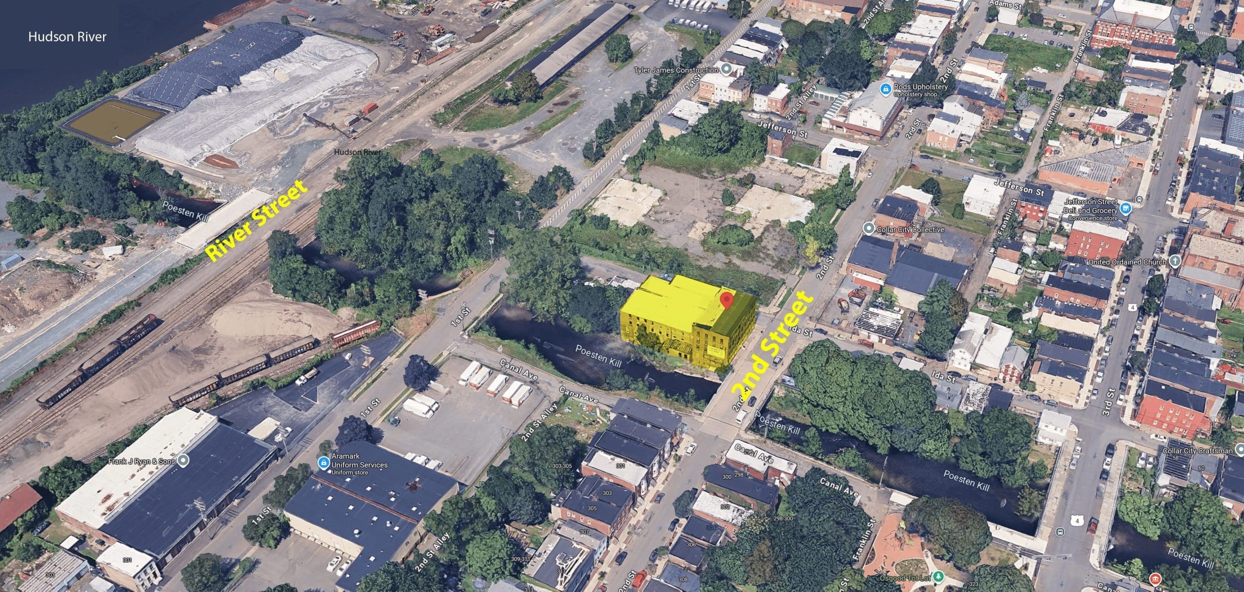 - Directions: The site covers 2nd St. to the east, 1st St. to the west, Ida St. to the north and the Poestenkill Canal along the southern border.
