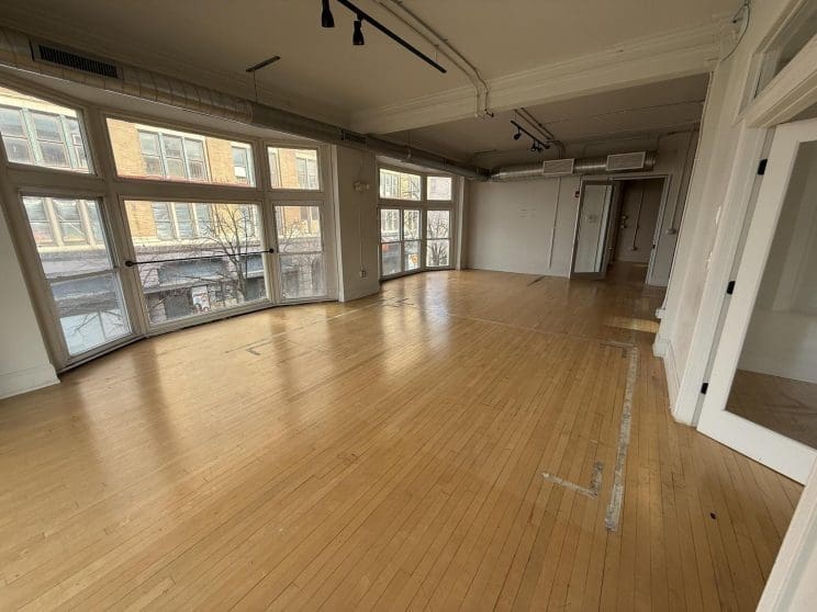 Property Description: Located in the heart of historic downtown Troy at the base of RPI University, this second-floor corner office offers excellent visibility and strong foot and vehicle traffic exposure. Situated in the west wing of the building, the space overlooks both 4th Street and Fulton Street, creating a bright and highly visible work environment. The mostly open-plan layout is complemented by a large conference room and two separate private meeting rooms, offering flexibility for collaborative and focused work. Beautiful floor-to-ceiling bay windows provide abundant natural light throughout the space, while hardwood floors add warmth and character. An ideal opportunity for professional, creative, or boutique office users seeking a prime downtown location with historic charm.